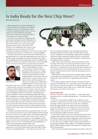 ress in manufacturing, especially with the “Make in India” initiative, tropreneur Park, the fi rst systems-design focused incubation center,