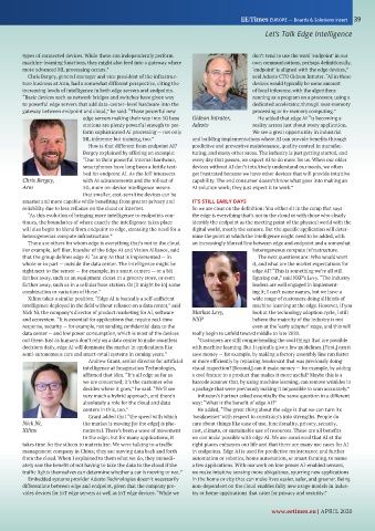 “As this evolution of bringing more intelligence to endpoints con- the edge is everything that’s not in the cloud or with those who clearly