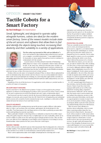Tactile cobots are also valuable for precise object placement when loading parts into a fixture for achieving a smart and modern factory. ■