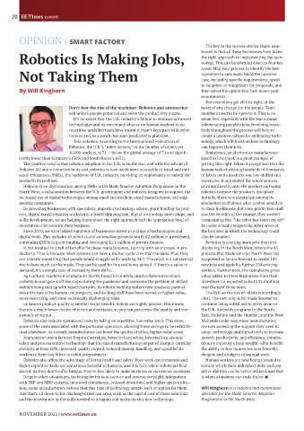 tion, some manufacturers believe that this type of technology simply isn’t an option for them. Will Kinghorn is a robotics and automation