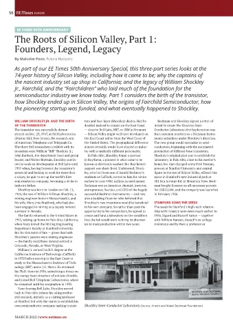 the nascent industry set up shop in California; and the legacy of William Shockley