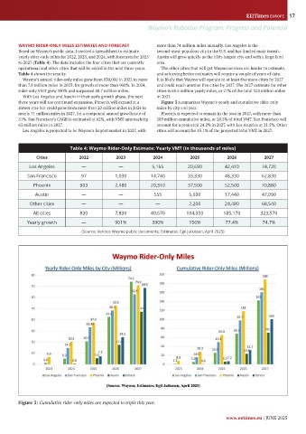 WAYMO RIDER-ONLY MILES ESTIMATES AND FORECAST more than 74 million miles annually. Los Angeles is the