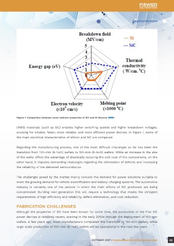 SiC Technology: Challenges the main electrical characteristics of silicon and SiC are compared.