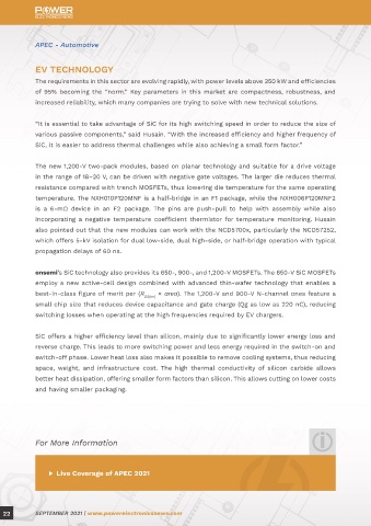 22 SEPTEMBER 2021 | www.powerelectronicsnews.com SEPTEMBER 2021 | www.powerelectronicsnews.com 23