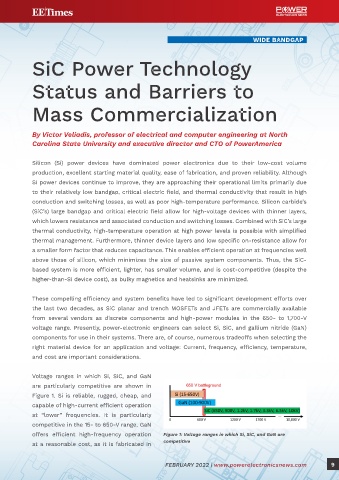 offers efficient high-frequency operation Figure 1: Voltage ranges in which Si, SiC, and GaN are