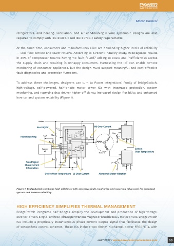 IEC 60730-1 compliance, with fault diagnosis. Figure 1: BridgeSwitch combines high efficiency with extensive fault monitoring and reporting (blue text) for increased