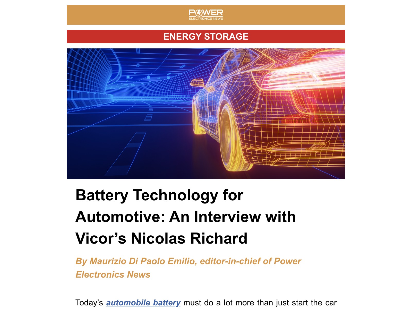 Battery Technology for Automotive: An Interview with Vicor’s Nicolas Richard