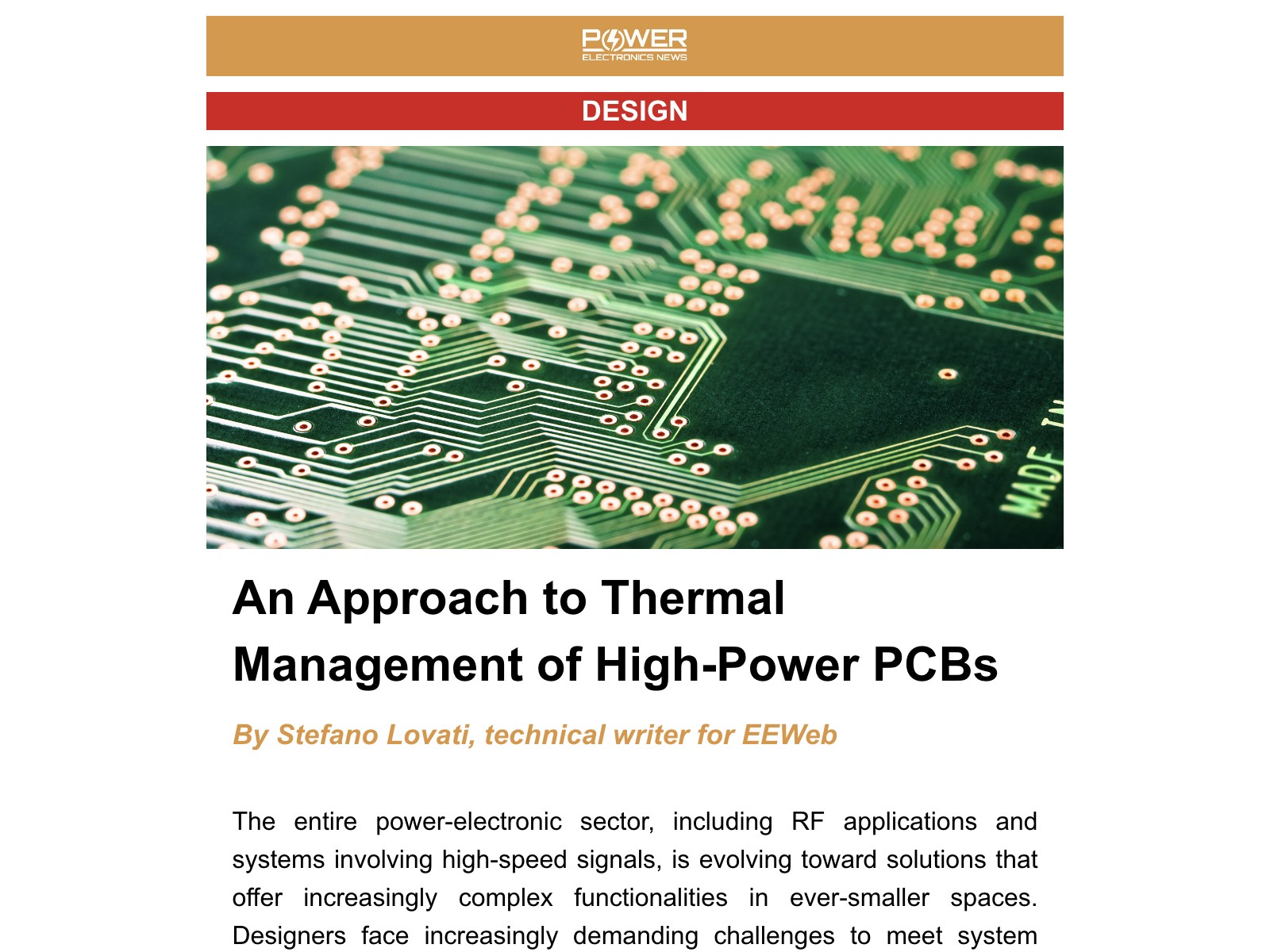 An Approach to Thermal Management of High-Power PCBs