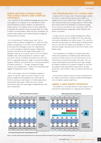 recovered from scrapped vehicles. Figure 1: A typical multicomponent wired BMS network (left) and the simpler arrangement made possible by wBMS technology (right)