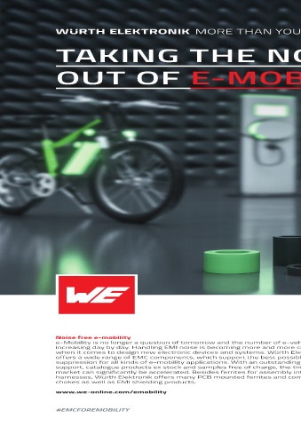 e-Mobility is no longer a question of tomorrow and the number of e-vehicles is • L a r g e p o r t f o i l o o f E M C c o m p o n e n t s