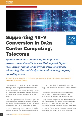 as it not only reduces operating expenses but allows Traditionally, data center power solutions convert DELIVERING EFFICIENT 48-V TO 12-V assume this would be another realizable benefit.