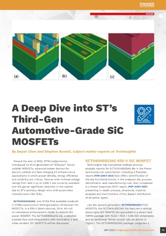 other vendors’ SiC MOSFETs will be discussed. Figure 1. The SCT040H65G3AG package comprises a