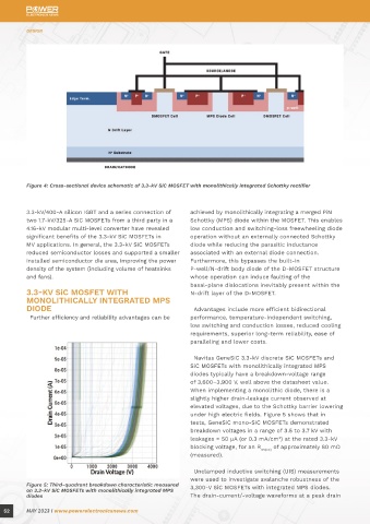 Figure 4: Cross-sectional device schematic of 3.3-kV SiC MOSFET with monolithically integrated Schottky rectifier monolithically integrated MPS diode testing reveals a robust avalanche capability and