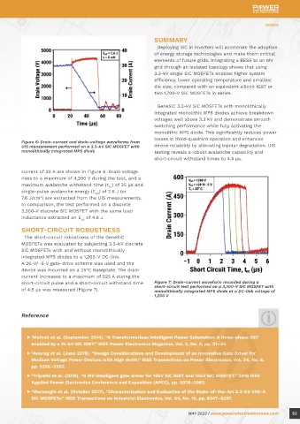 Navitas GeneSiC 3.3-kV discrete SiC MOSFETs and of 4.5 µs was measured (Figure 7). short-circuit test performed on a 3,300-V SiC MOSFET with